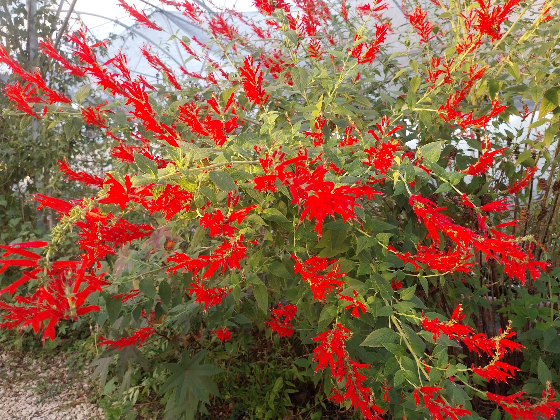 -Splendide vivace à feuilles et fleurs comestibles, délicieux arôme d'ananas. Pousse facilement à 1m. Épis de fleurs rouges éclatantes en automne. Rustique a -10, a cultiver en pot et rentrer dans les régions froides. Rabattez à la fin de l'hiver. Peu exigeante, elle préfère un sol riche et une exposition ensoleillée. -COMESTIBLE.