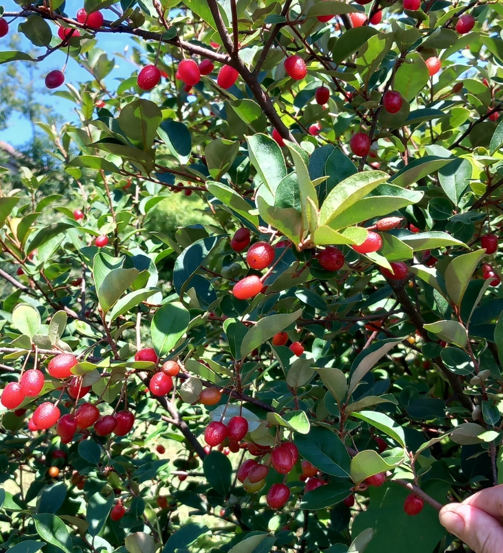 Les Elaeagnus sont des fixateurs d'azote de l'air, donc appréciés par les autres plantes du jardin. Le Goumi du Japon a des feuilles argentées, caduques, et ses fleurs blanches assez discrètes mais très parfumées sont suivies par des baies rouges, ovales, un peu astringentes, souvent toutes mangées par les oiseaux. Résistant à -25C°, tous types de sols, soleil ou légèrement ombragé.